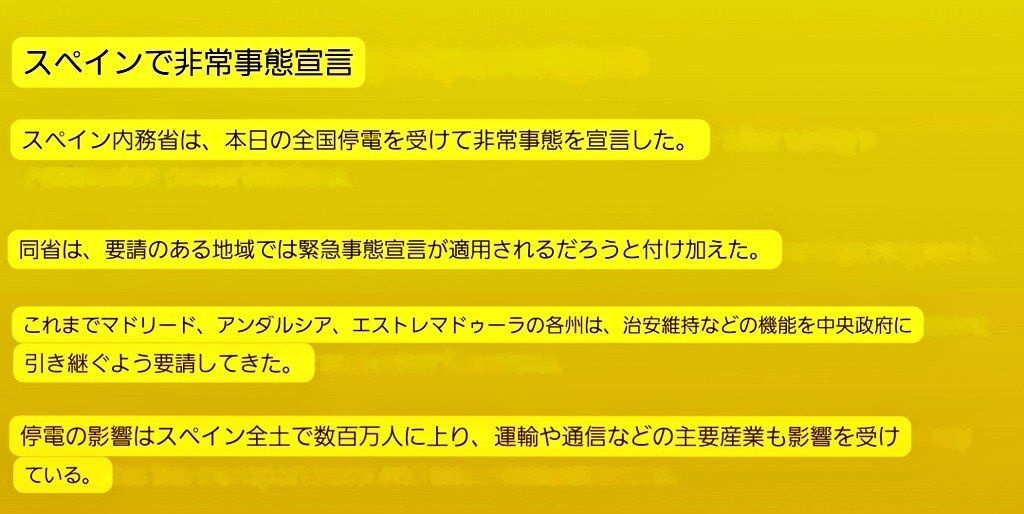 - 欧州の停電は、ポルトガル、スペイン、フランス、ベルギー、オランダ、ギリシャ、アンドラに拡大。