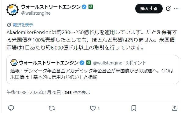 デンマークトランプ政権に激怒、デンマーク年金基金アカデミック年金基金が米国債から撤退へ