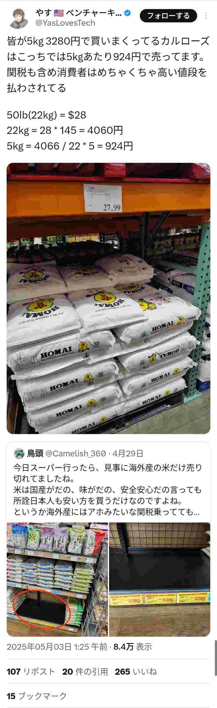 アメリア人にコメの値段でマウント取られるとは思わなかった