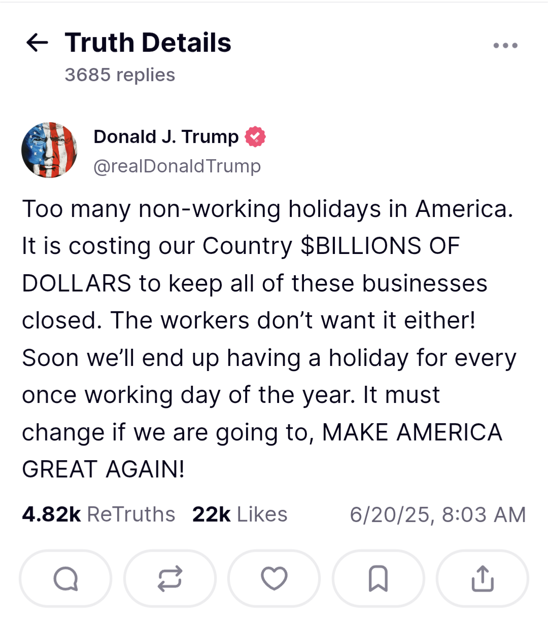 トランプ「アメリカは祝日が多すぎる💢休みなしで働いてMAGA!労働者も同じことを望んでる🐙」お、おやびん?
