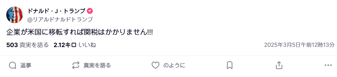 トランプ「企業が米国に移転すれば関税はかかりません!!!」