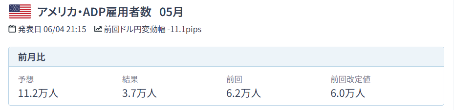 ADP弱いけど月初の雇用指標三兄弟って強弱まちまちでどれが実態に則してるのかよくわからん