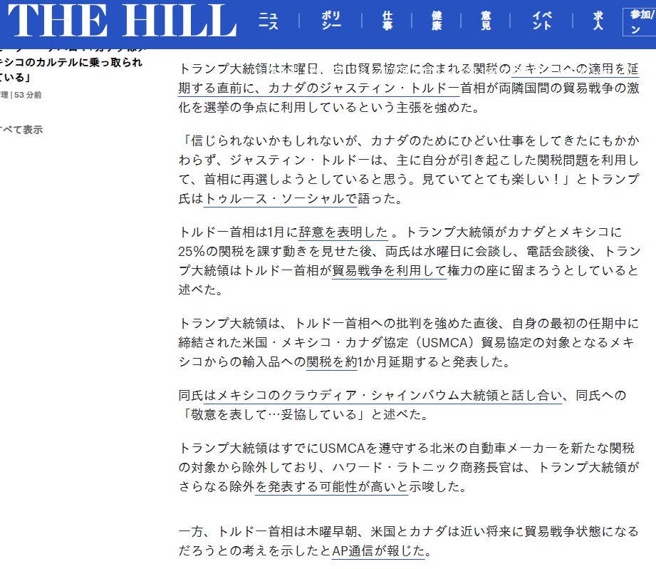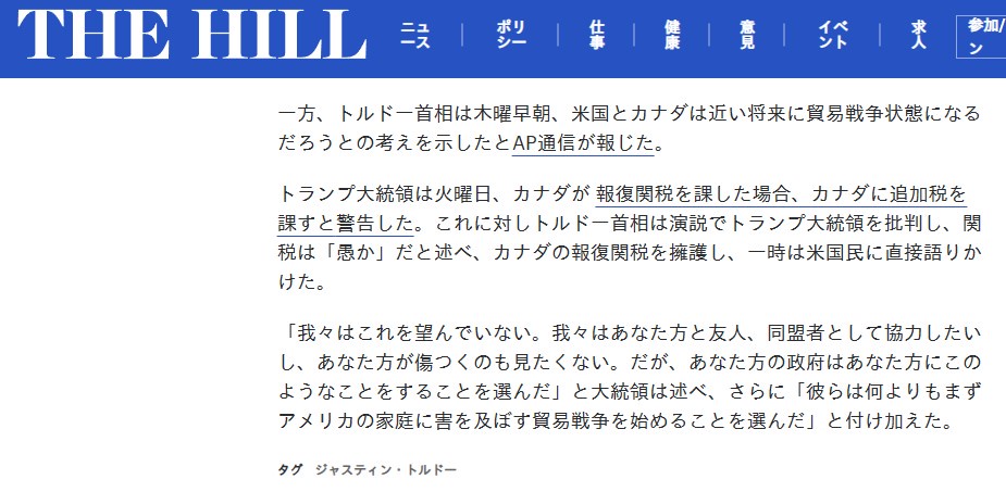 トルドーが何もないのにいきなり関税かけるって言い出したんだっけ