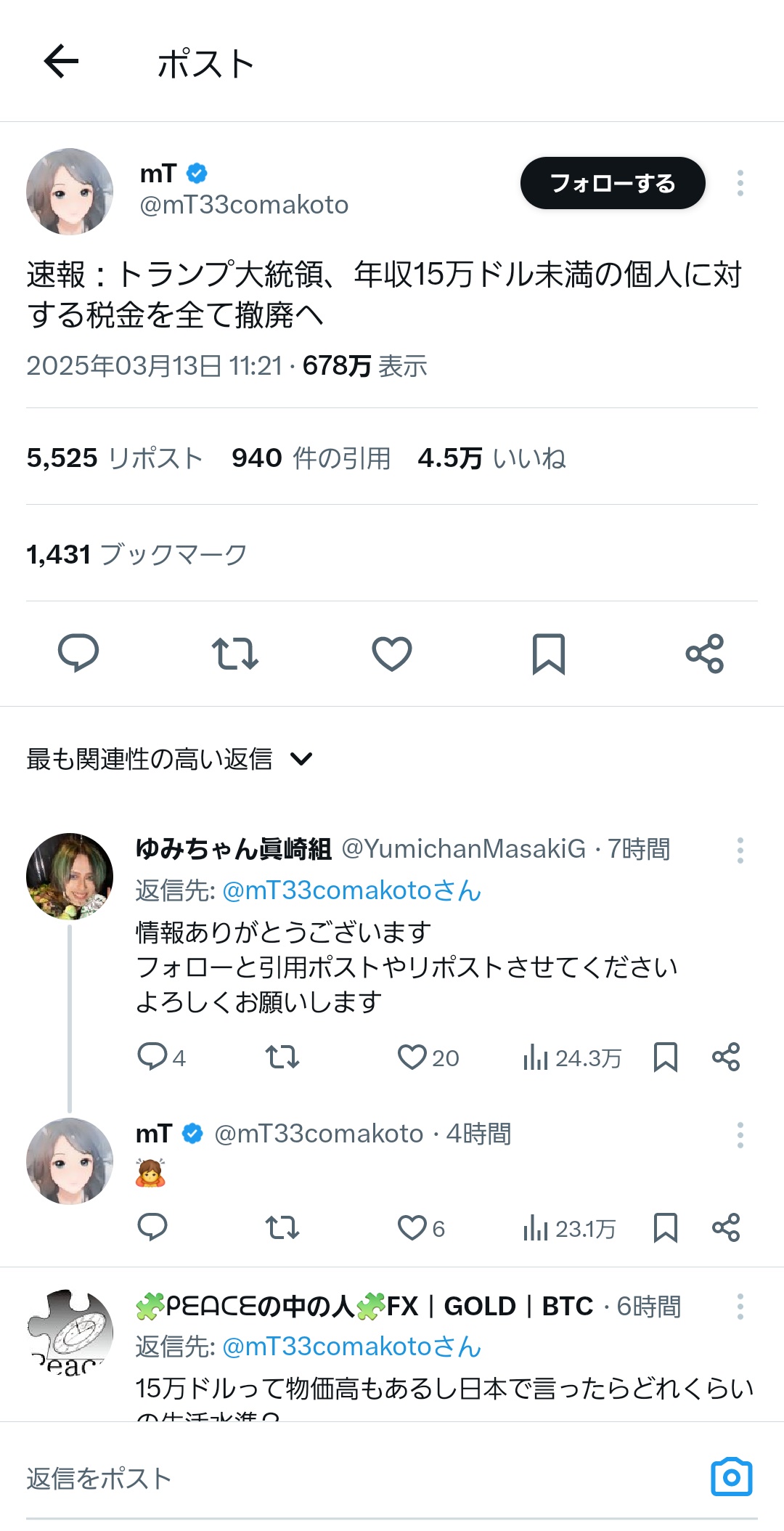 https://www.investing.com/news/economy/trump-wants-no-taxes-on-people-making-below-150000-annually-lutnick-tells-cbs-3925663 - 3 : 2025/03/13(木) 23:48:36.87 ID:bGt9Tal6r