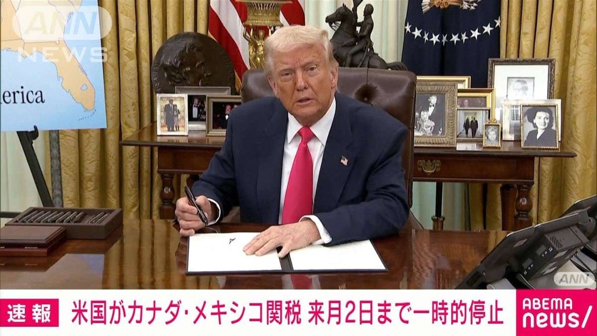 - アメリカのトランプ大統領は、メキシコとカナダに対して発動した25%の関税措置を来月2日まで一時的に停止すると発表しました。