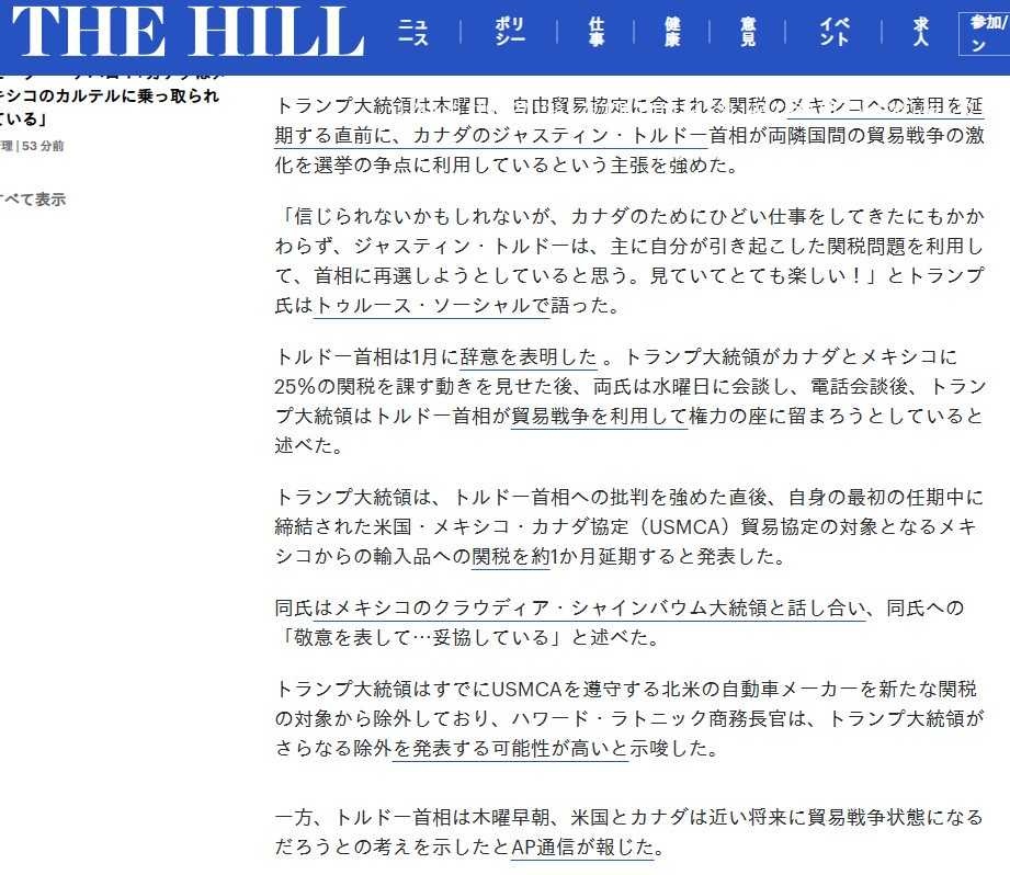 - カナダとメキシコの卑劣な報復関税からまもってくれてありがとうおやびん😭