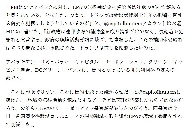 トランプ政権、主要な環境保護団体の全ての銀行口座凍結し刑事告発。「地球温暖化という詐欺で公金チューチューしている」