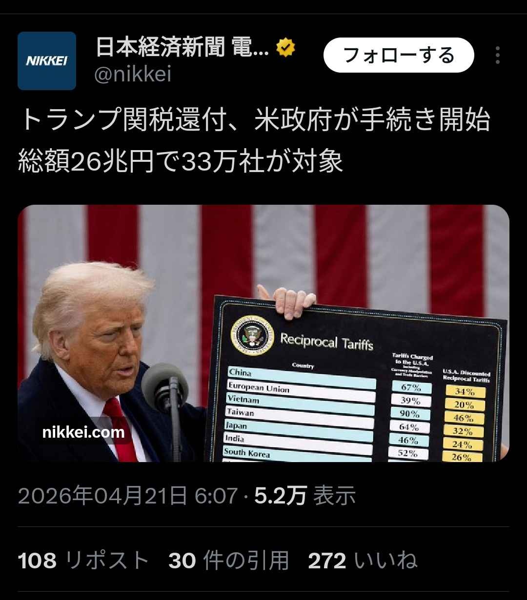 - アメリカ人が「俺らアメリカ人が関税分多く支払ったのにさらにメーカーが金もらうのかよ!」って切れてるな