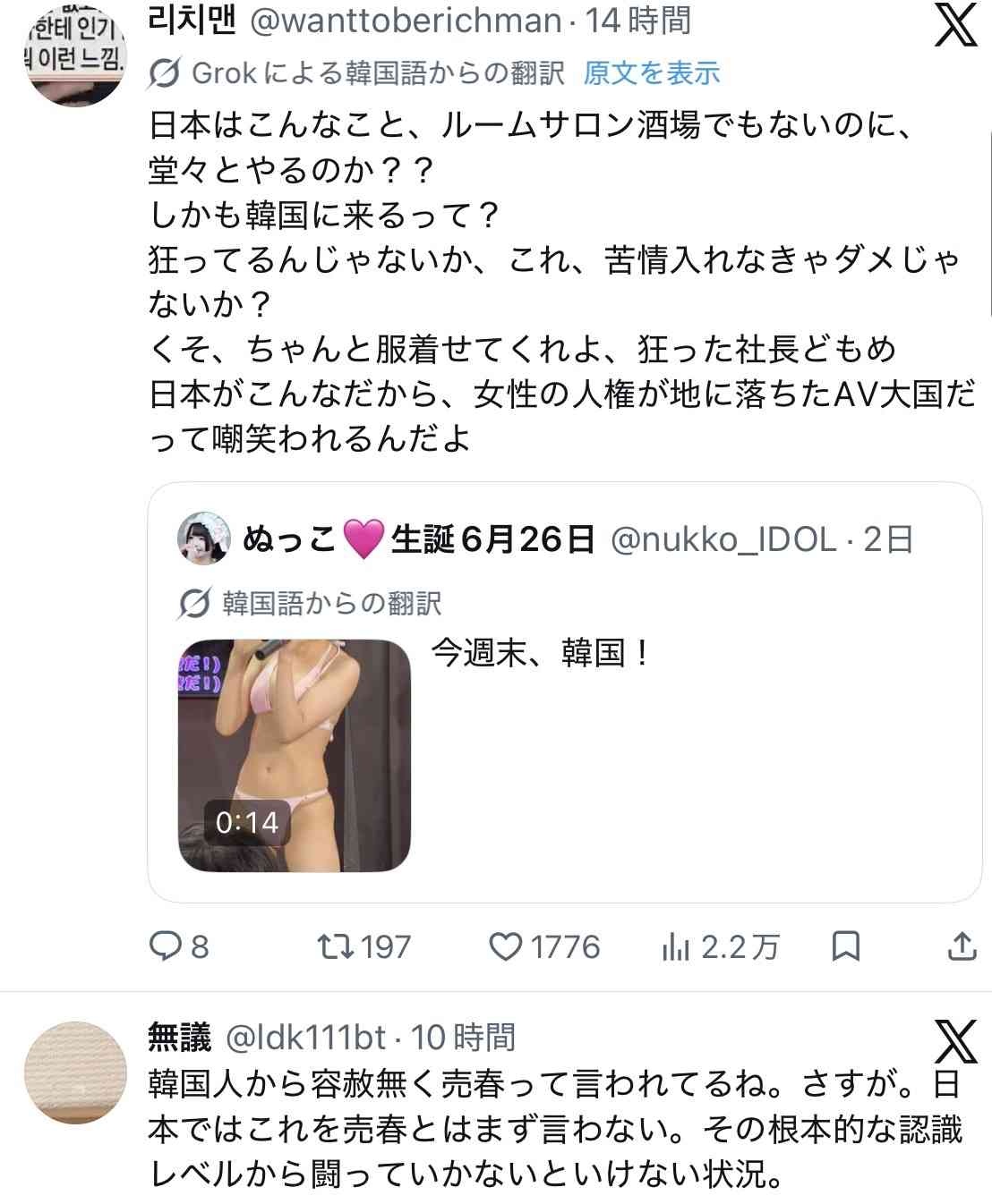 - 韓国人のツイートってツイフェミみてえだな