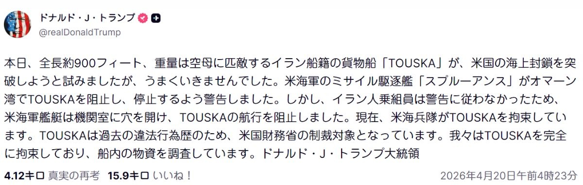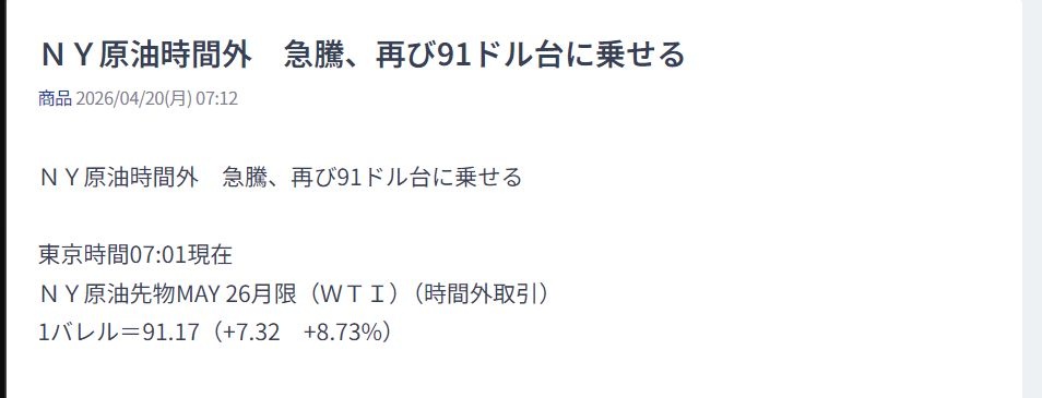 オイルショックどころか世界恐慌になるで - 67 : 2026/04/20(月) 07:42:13.63 ID:RQI3Yic00