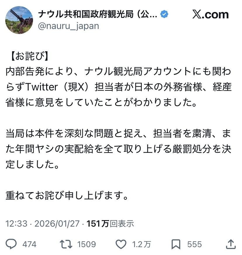 - ナウルとかいうどうでも良い国だからってめちゃくちゃすぎるだろあのアカウント