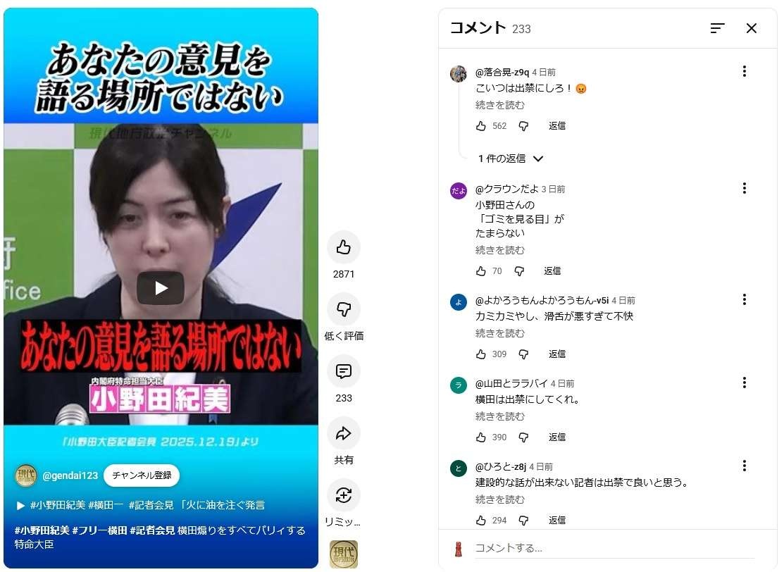 ニューメディア「小野田大臣が記者を論破😤!!」普通の日本人「小野田さん最高😍!この記者は出禁にして😡!」