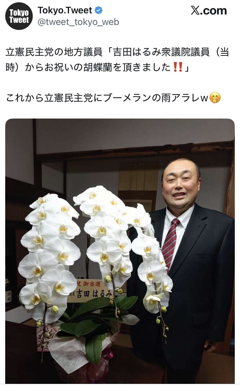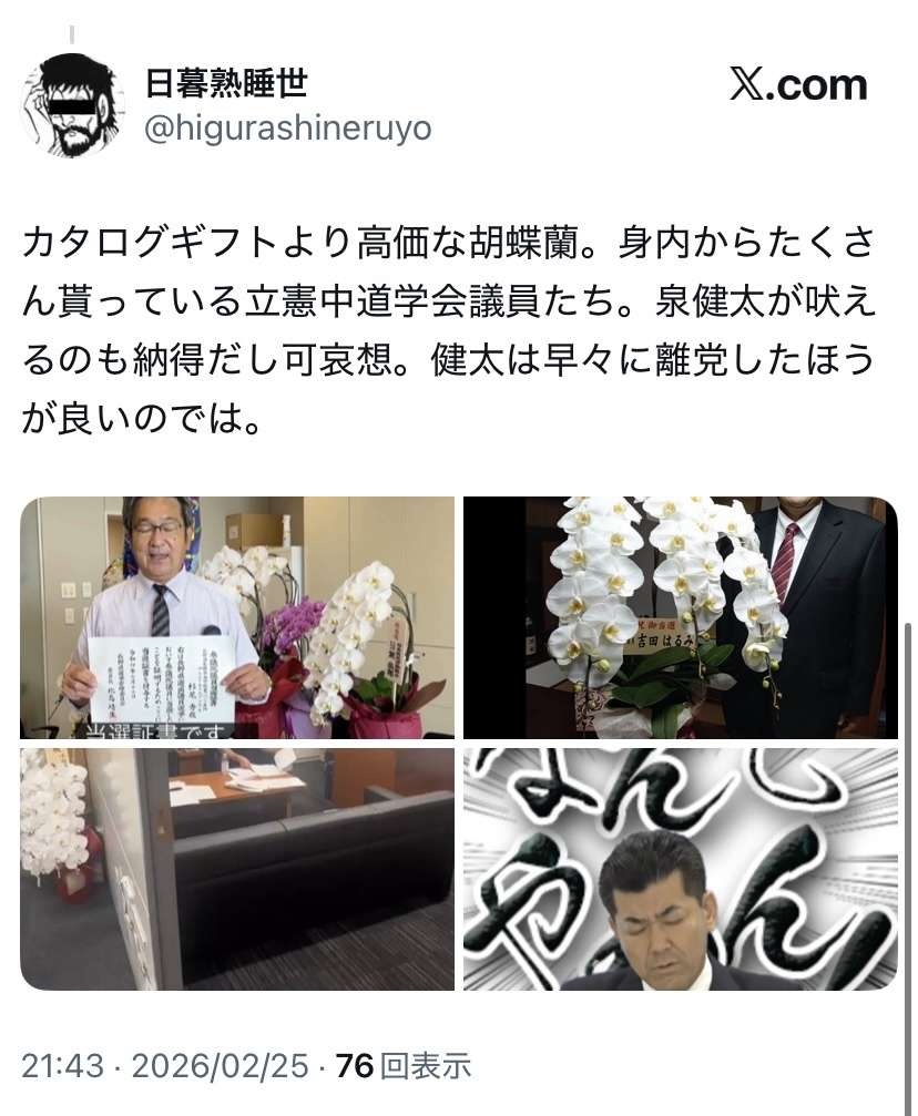 - 自民党の議員にも当選のお祝いの胡蝶蘭はあるでしょ、話しそらすなよ