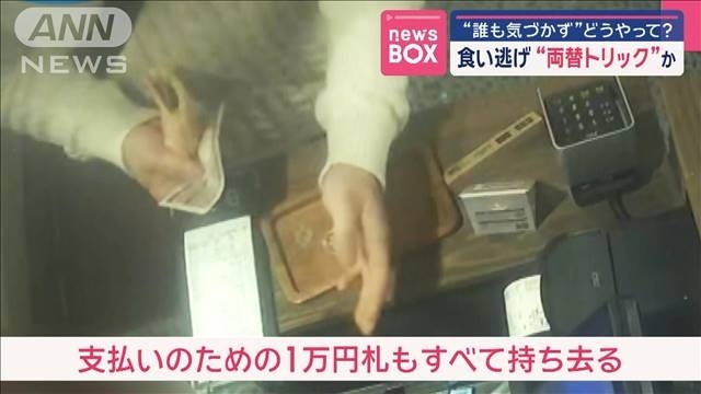 食い逃げ“両替トリック”か “誰も気づかず”どうやって?(テレビ朝日系(ANN)) - Yahoo!ニュース誰も気が付かない“食い逃げ”でした。使われたのは“両替トリック”。その瞬間が映っていました。 ■“誰も気づかず”どうやって? 極味や赤坂店 上原昌也店長 「気付かれない感じでやられた」 被害news.yahoo.co.jp - 2 : 2025/05/06(火) 14:22:47.824 ID:hVNpEktHD