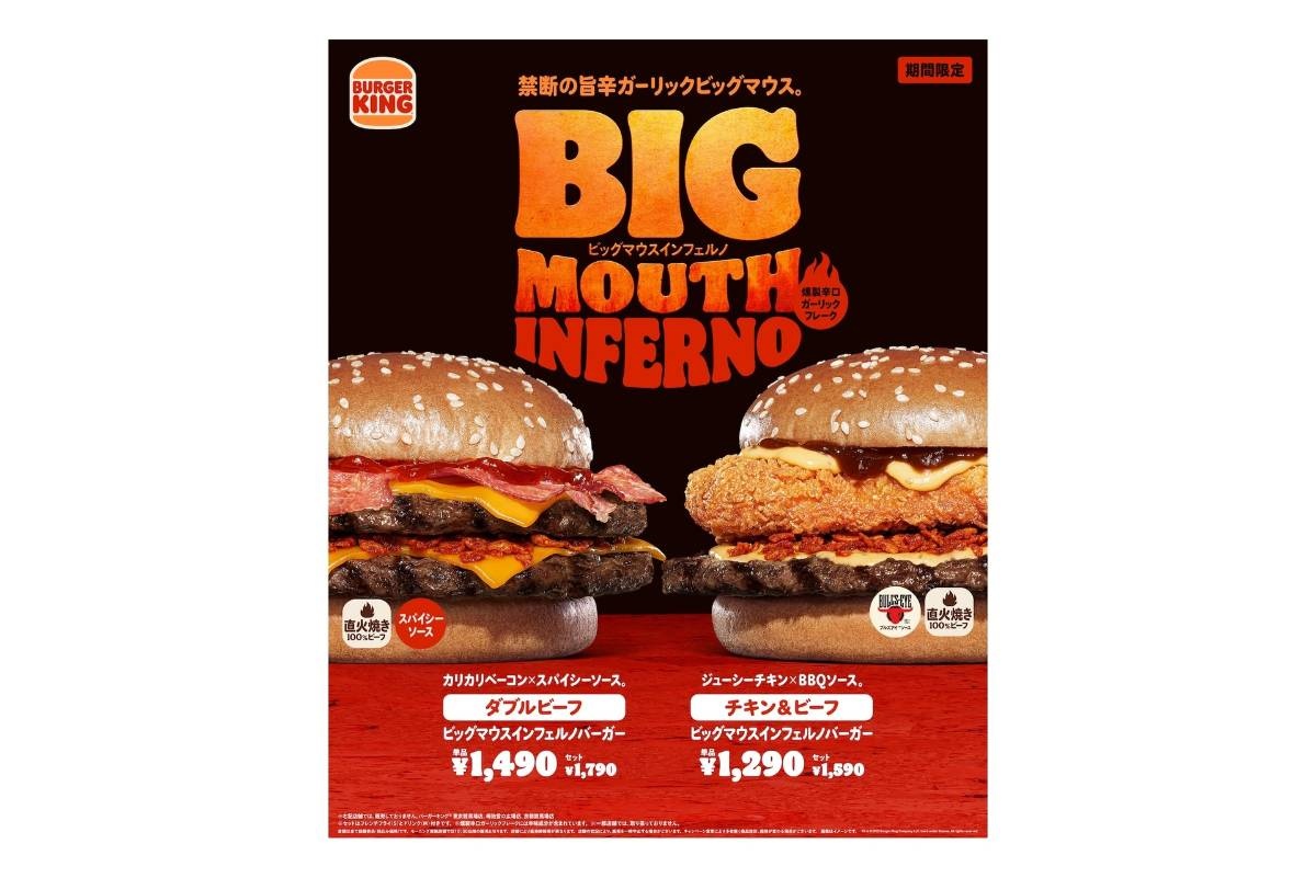 バーガーキング“燻製辛口ガーリックフレーク”の直火焼き旨辛バーガー「インフェルノ」限定発売 – グルメ Watch