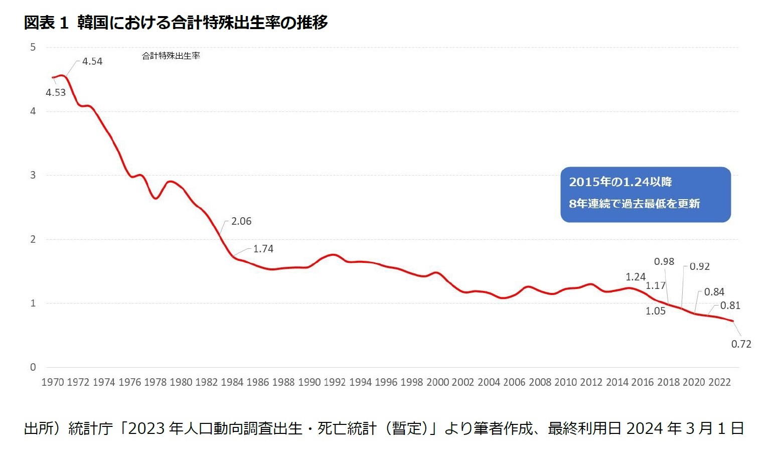 韓国の出生率が0.72で、8年連続過去最低を更新-若者の意識を的確に把握し有効な対策の実施を-