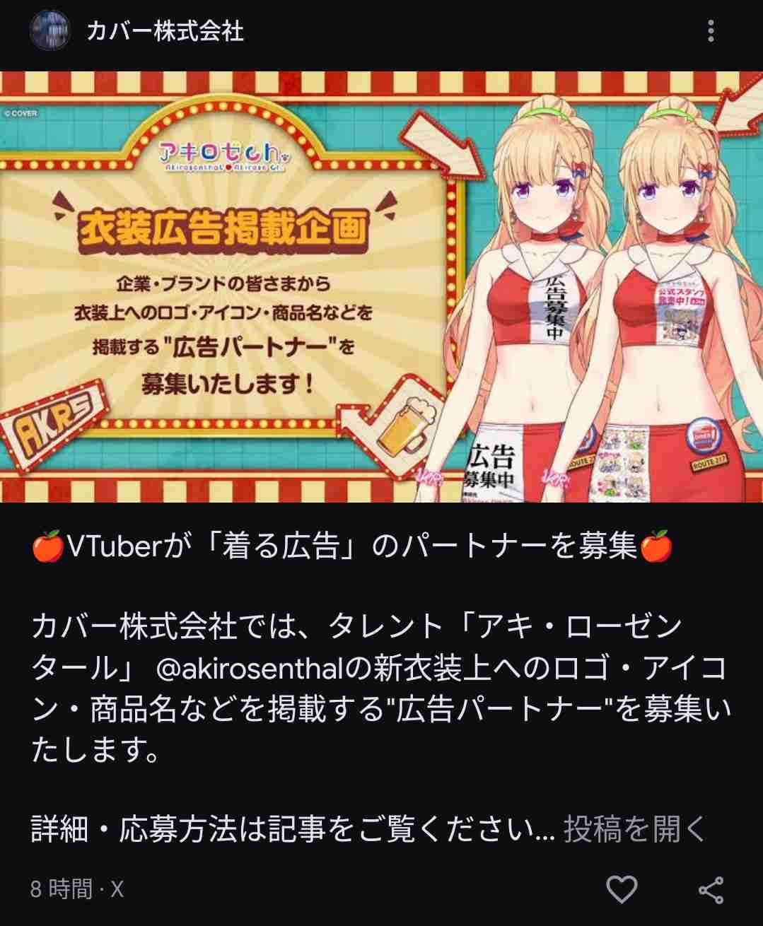 - Vtuberって画面端に縮小された状態がデフォだから服に広告とか付けても小さすぎて分からなくね
