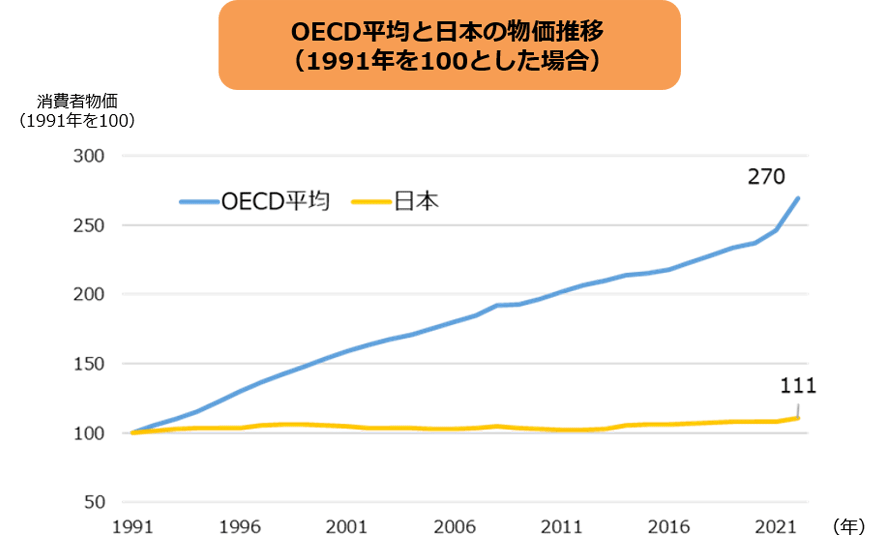 賃金の上昇より物価の上昇率のほうが高いことがグラフから見て取れますね