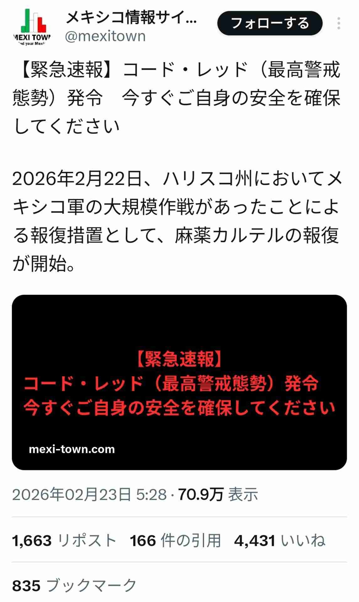 今回はメキシコ政府が麻薬王を駆除したのが発端だからいつもよりヤバい感じ - 27 : 2026/02/23(月) 17:18:58.853 ID:Qw6pJa8U0