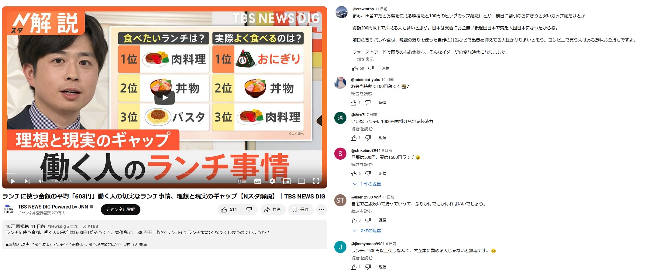 メディア「日本人がランチに使う金額は平均603円」日本人「ランチ500円以上は高い!😥富豪か?」