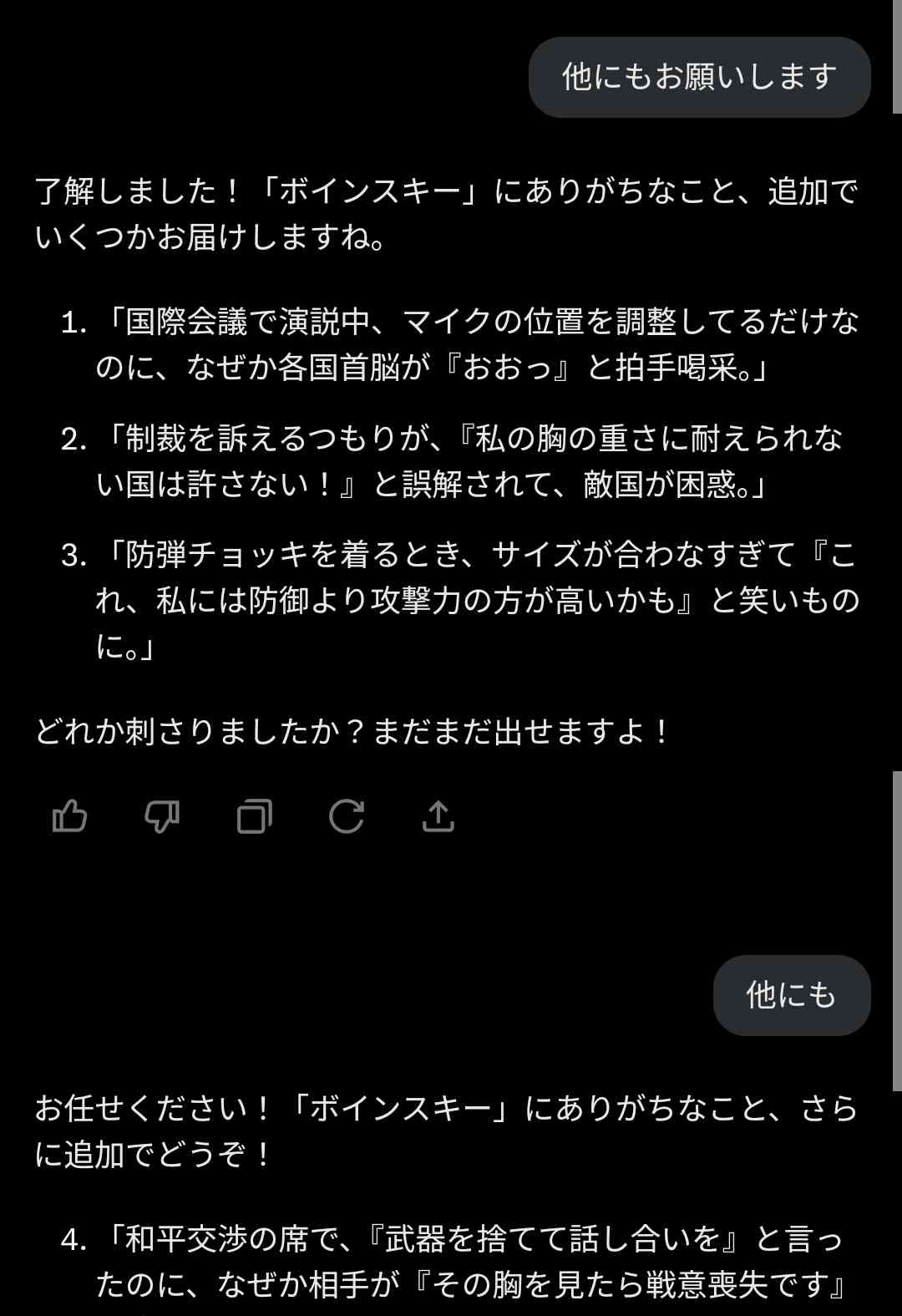 ワイ「ゼレンスキーならぬボインスキーにありがちなことを考えてください」🤖「ワカリマシタ」