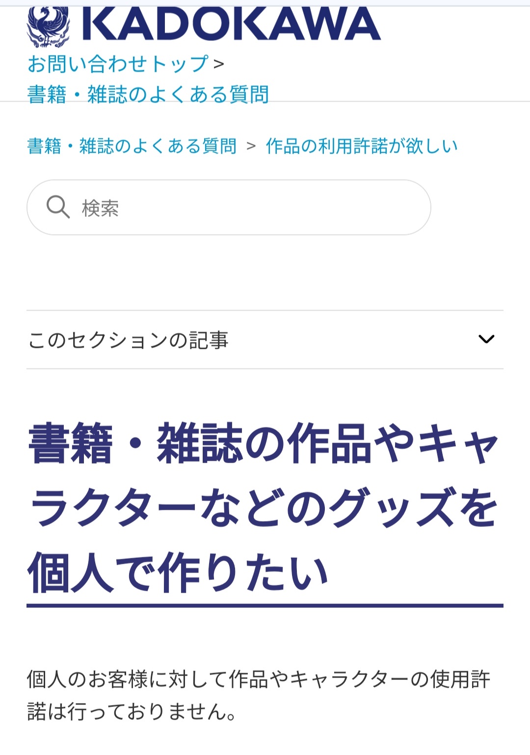 カドカワ「個人に対して使用許諾は行っておりません。」