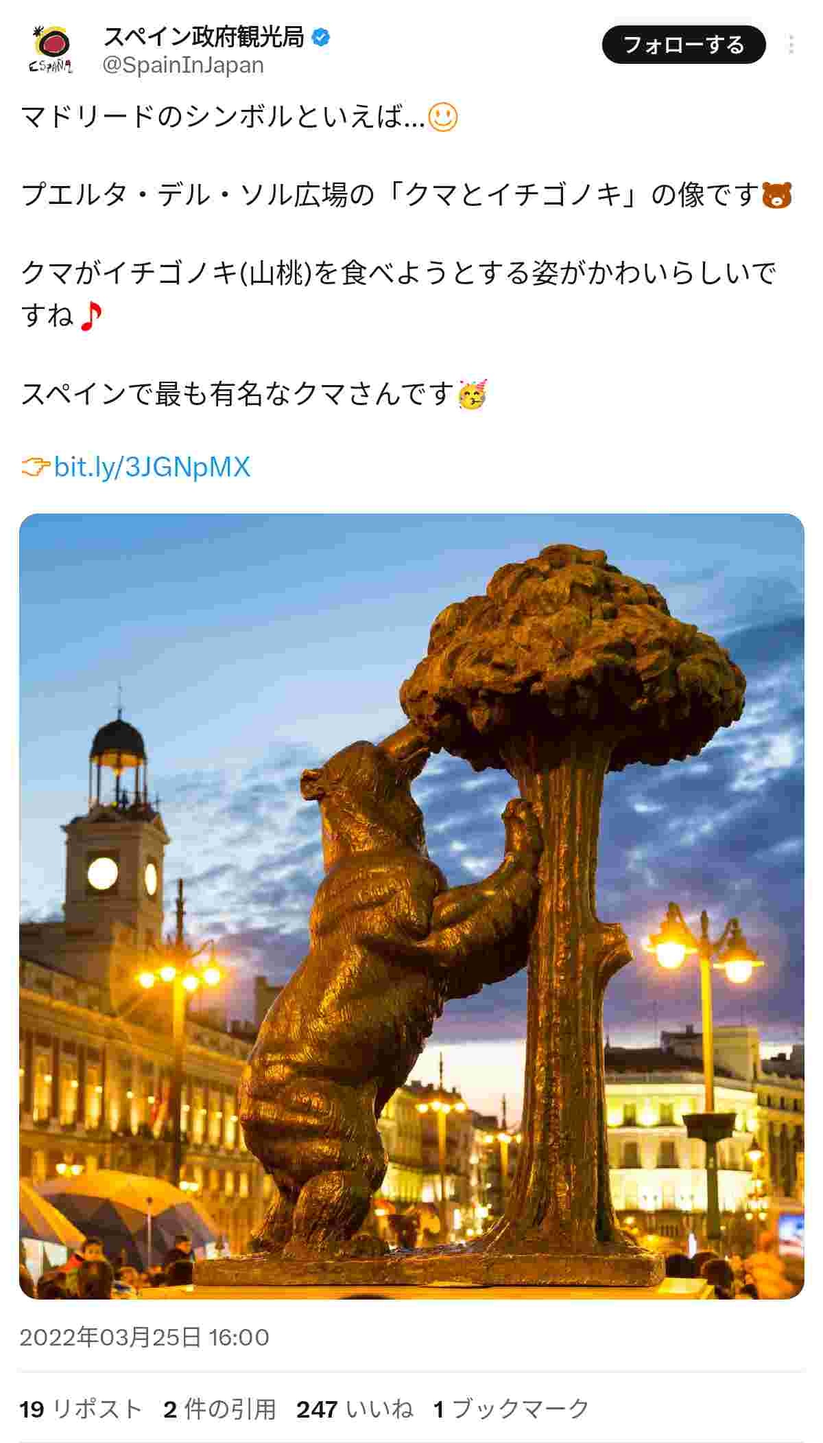 おるでちなみにスペインで最も有名な熊さん