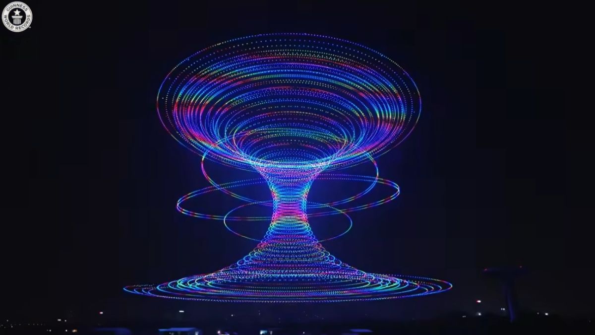 中国で大規模なドローンショーが実施され、同時飛行数でギネス世界記録を更新した。