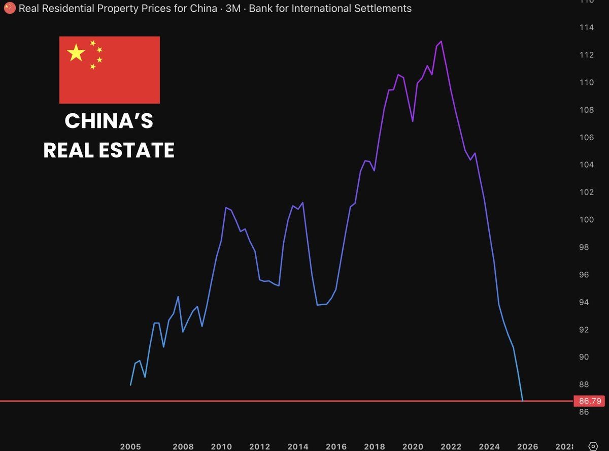- 中国の不動産市場が20年ぶりの低水準に急落し、価値の4分の1を失いました。