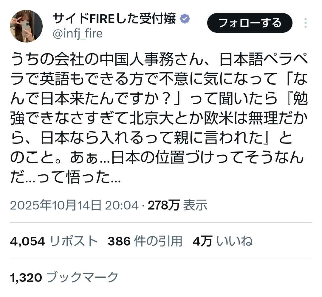 日本に進学就職しに来る人は本国じゃ負け組扱いなのは事実