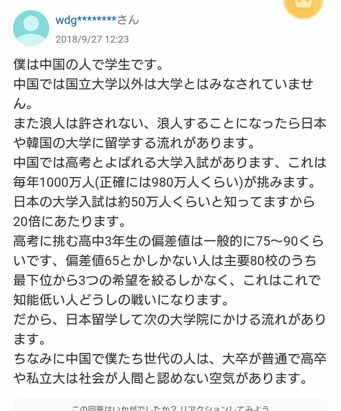 中国人「北京大や欧米の大学に行く学力のない人が日本や韓国の大学に留学する」