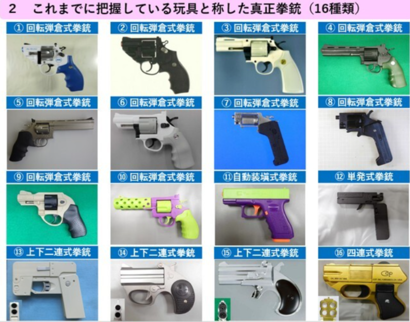 これらを発砲した事件の覚知はないものの、このうちの1種類を人に突きつけて脅迫した事件が1件確認されているほか、