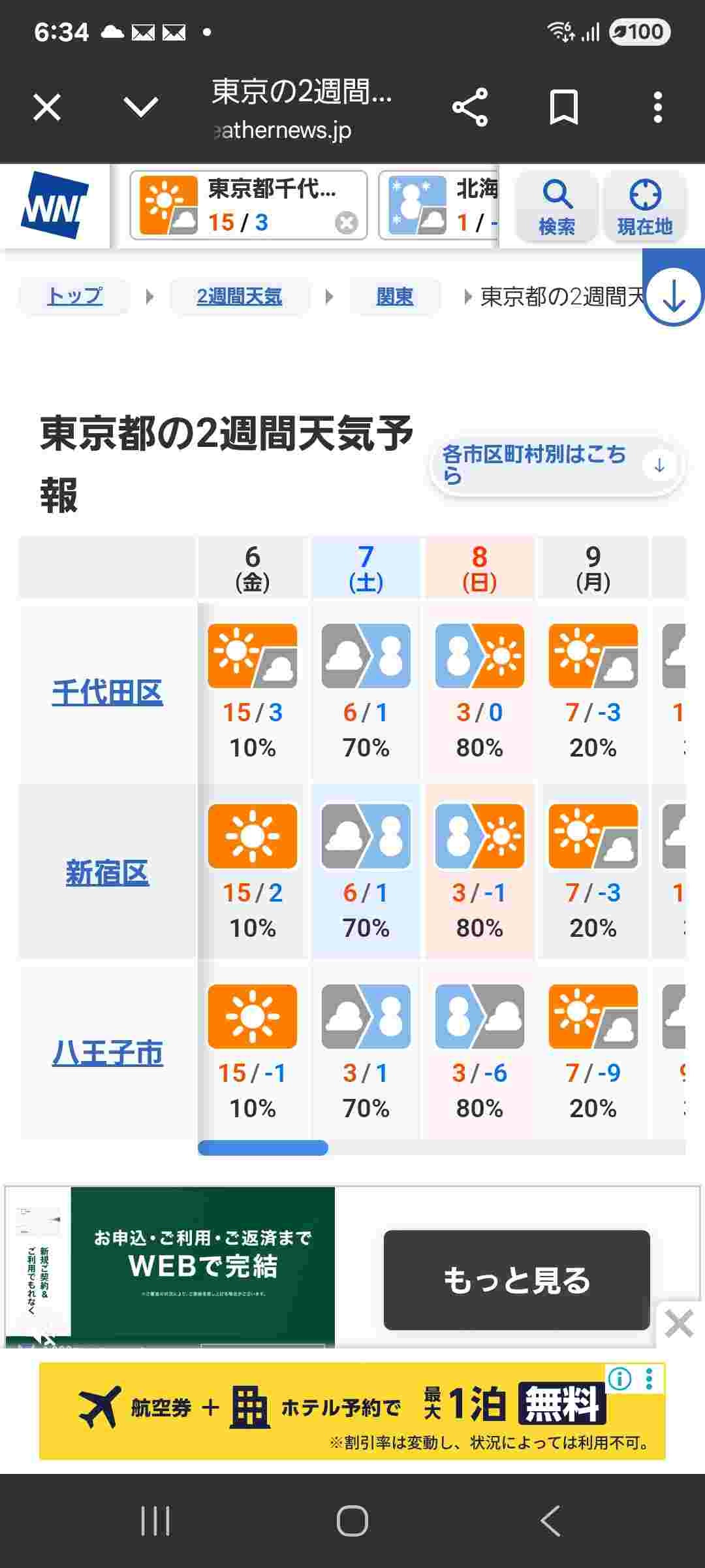 今日の東京の最高気温15℃、土曜6℃日曜3℃ 寒暖差モメン無事死亡へ