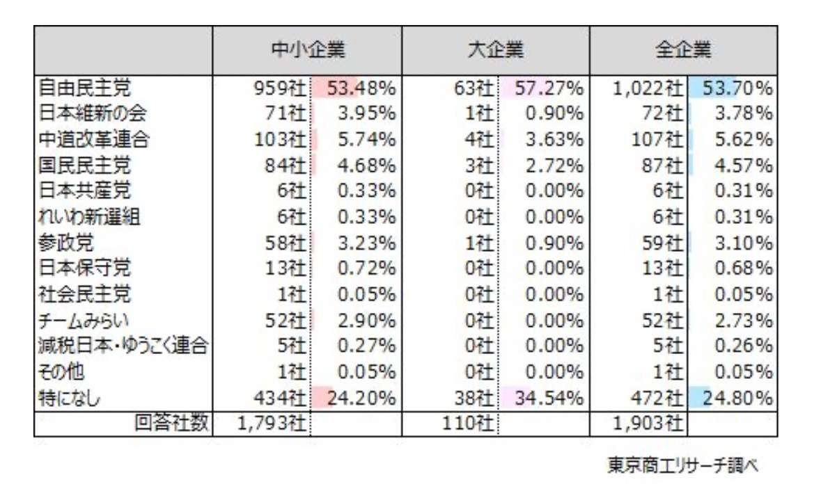 東京商工リサーチが企業を対象に衆院選のアンケートを実施したところ