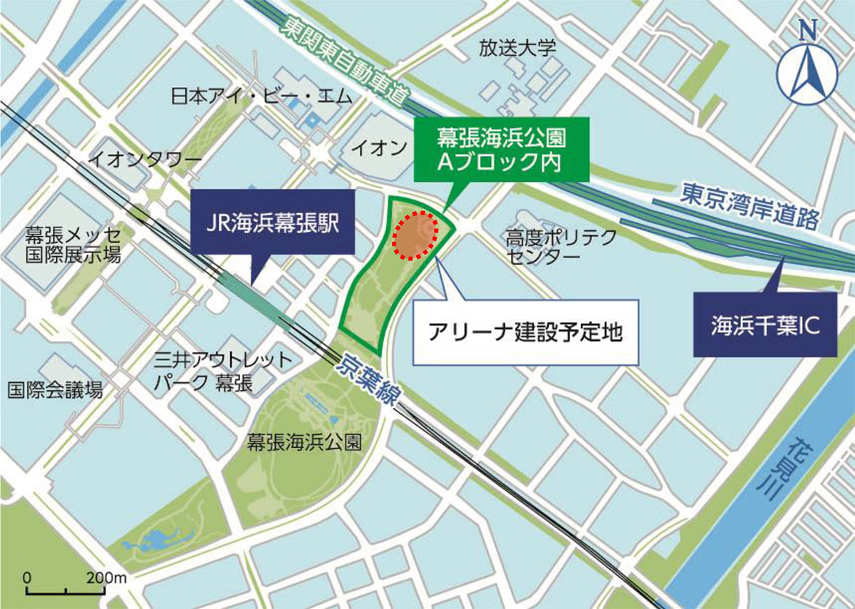 所在地は千葉県千葉市美浜区ひび野1丁目110。アクセスはJR京葉線 海浜幕張駅から徒歩3分、東関東自動車道 海浜千葉ICから車約3分。地上6階、地上約40m、客席2万席規模のアリーナを計画している。敷地面積は約50,000m2、建築面積は約20,000m2、延床面積は約50,000m2。サブアリーナ仕様はバスケットコート1面。