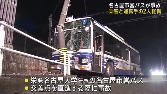 9日夜、名古屋市営バスが信号の柱に突っ込む事故があり、2人が病院に運ばれました。