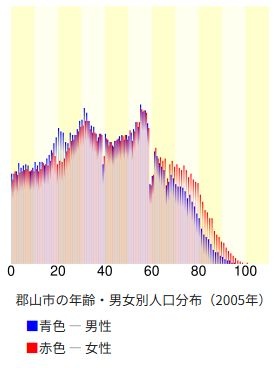 補足すると2005年の郡山市の人口ピラミッドで最も多いのは当時アラ還世代なのよ