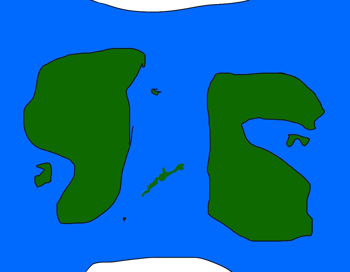 例えば縦長でユーラシア大陸並みのバカデカい大陸が東西に二つあるとかさ