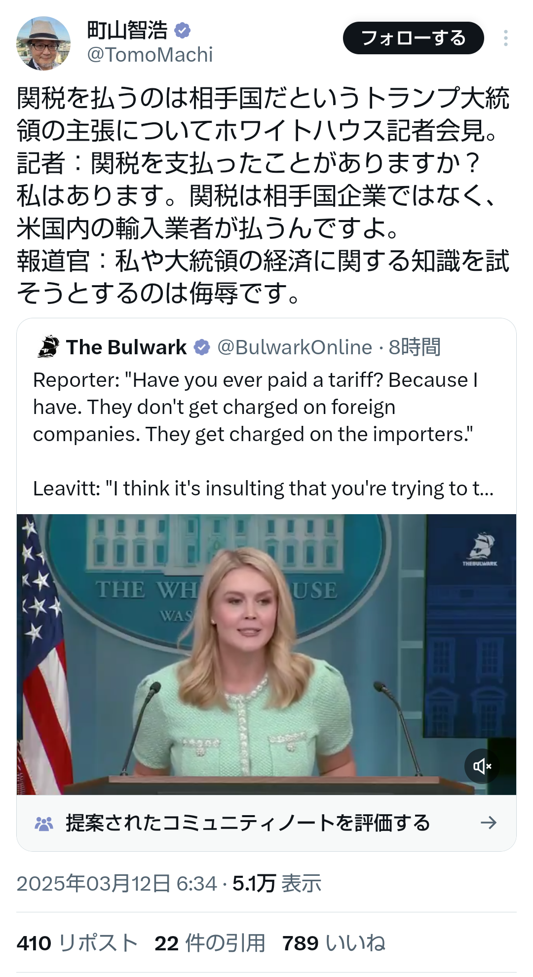 報道官「私やトランプ大統領に経済知識を聞くのは侮辱です」記者「?」