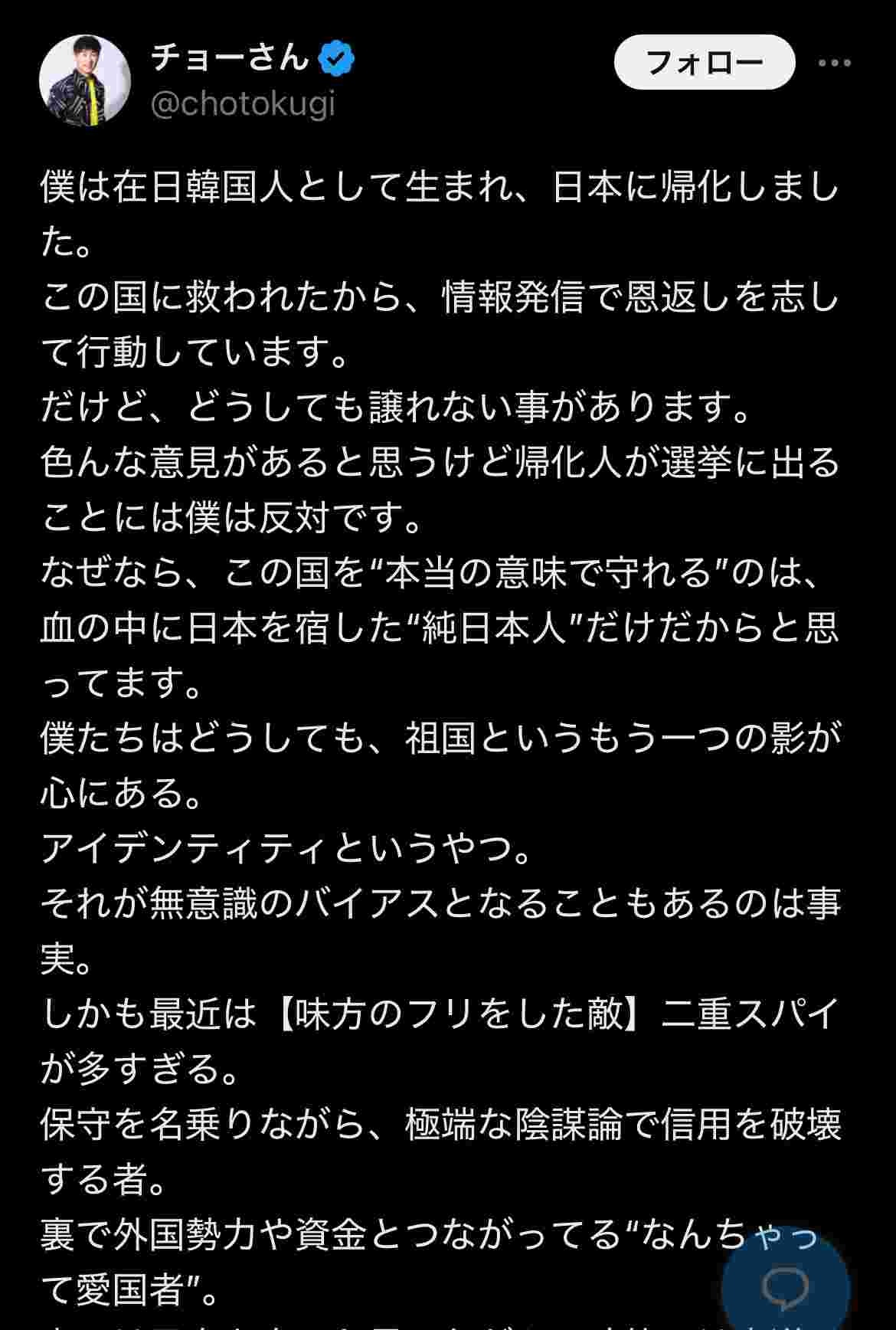 なぜなら、この国を“本当の意味で守れる”のは、血の中に日本を宿した“純日本人”だけだからと思ってます。
