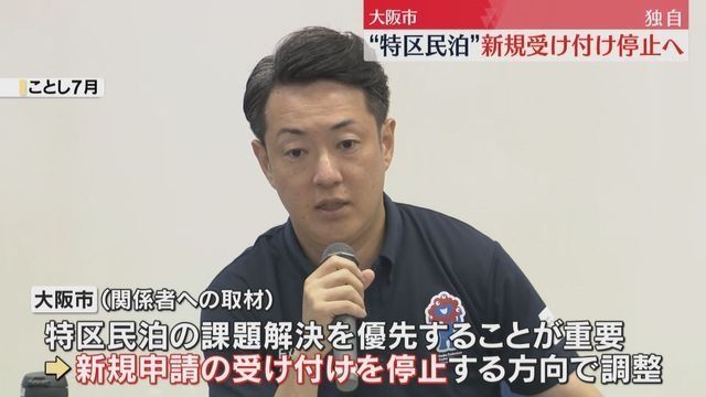 一方で、騒音やごみ処理などで、近隣住民とのトラブルが増加していて、大阪市は、プロジェクトチームを立ち上げ、対応を協議しています。関係者によりますと、市は、特区民泊の課題解決を優先することが重要と判断し、新規申請の受け付けを停止する方向で調整しているということです。