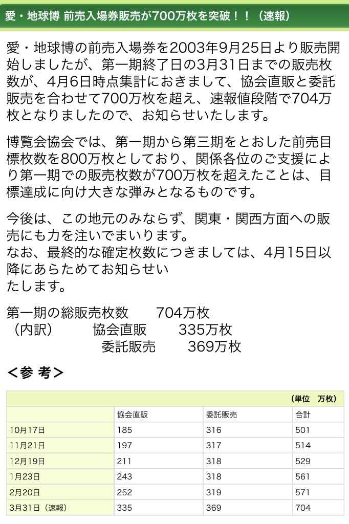 開幕1ヶ月前:806万枚(内、700万枚は企業購入) - 2 : 2025/03/13(木) 21:49:31.148 ID:F/8y1KPk0