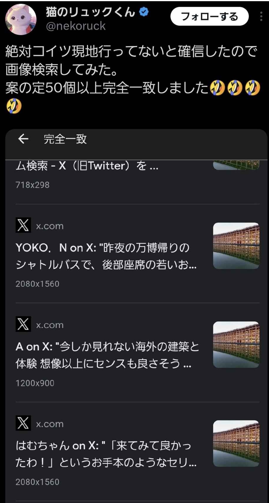 大阪万博アンチ「みんな同じ画像使ってるのぉぉ!!」→引用リツイートでしたw