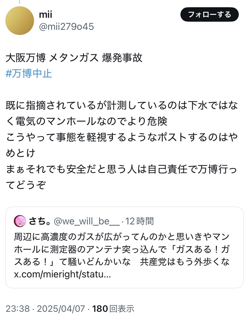 こういう奴らが言い訳する姿が見たいから万博での大爆発を期待してます