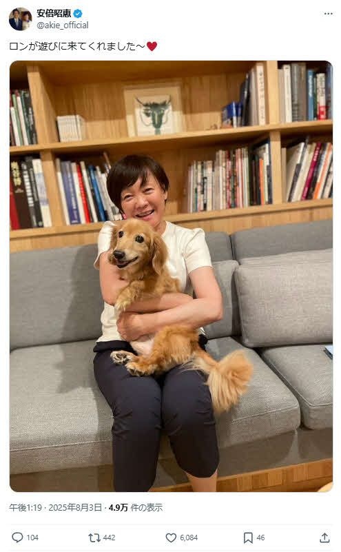 安倍昭恵さん、安倍晋三元首相存命中に飼い始めて今は別の人に譲渡した、愛犬ロンとの久しぶりの2ショット公開