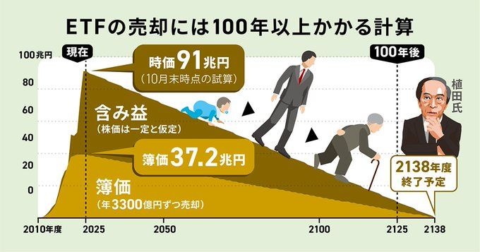 日銀のETF売却100年計画 株安回避と運用益温存の長期保有