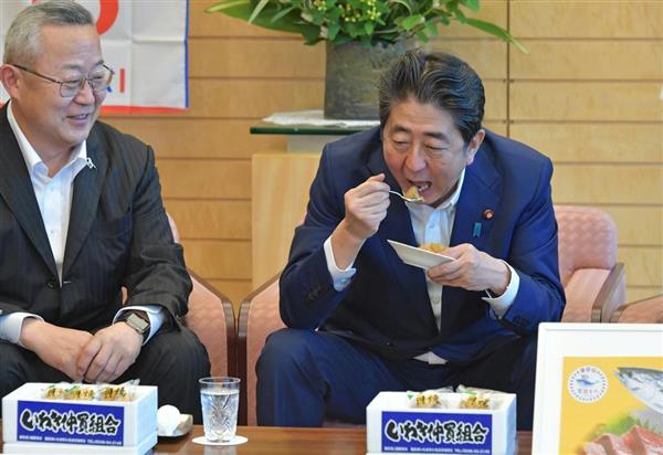 安倍晋三首相、福島いわきのウニ「ぷりぷり。元気が出そう」