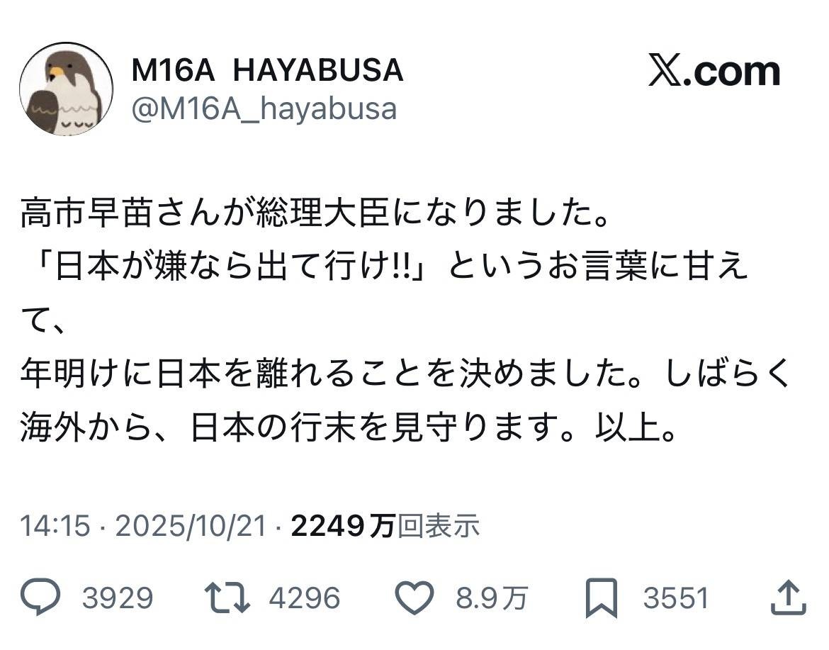 日本出て行く人を叩いてるだけやで - 10 : 2025/10/23(木) 15:47:30.42 ID:qvYcNxof0