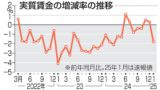 - >>厚生労働省が10日公表した1月の毎月勤労統計調査(速報、従業員5人以上)によると、物価変動を考慮した1人当たりの実質賃金は前年同月比1.8%減で、3カ月ぶりのマイナスとなった。コメや生鮮野菜など食料価格の高騰や政府の補助が縮小したガソリン代の値上がりで、物価高が加速したのが響いた。