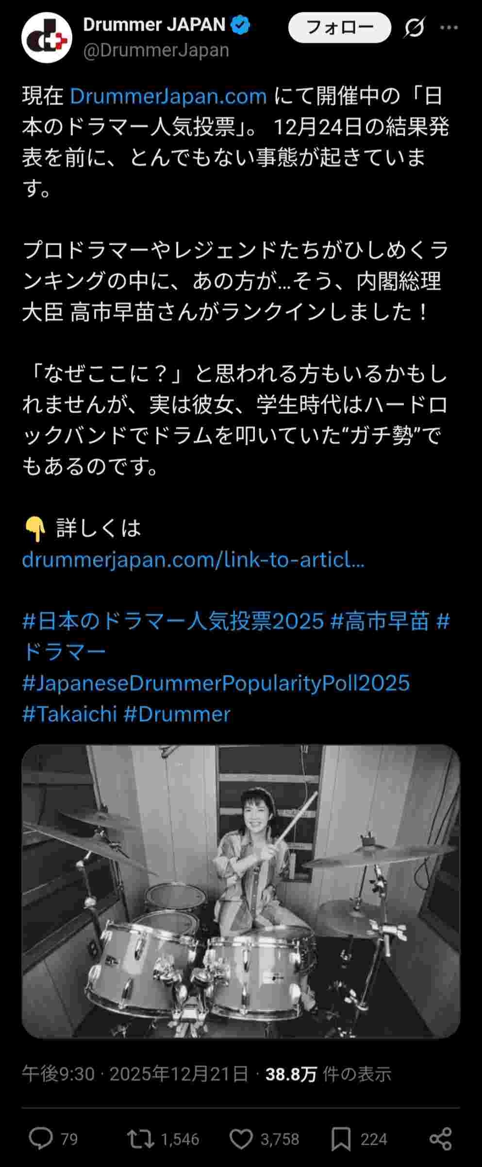 ドラムの政治利用してないからそんなこともなさそう - 40 : 2025/12/23(火) 11:34:33.10 ID:FrxD98i/0